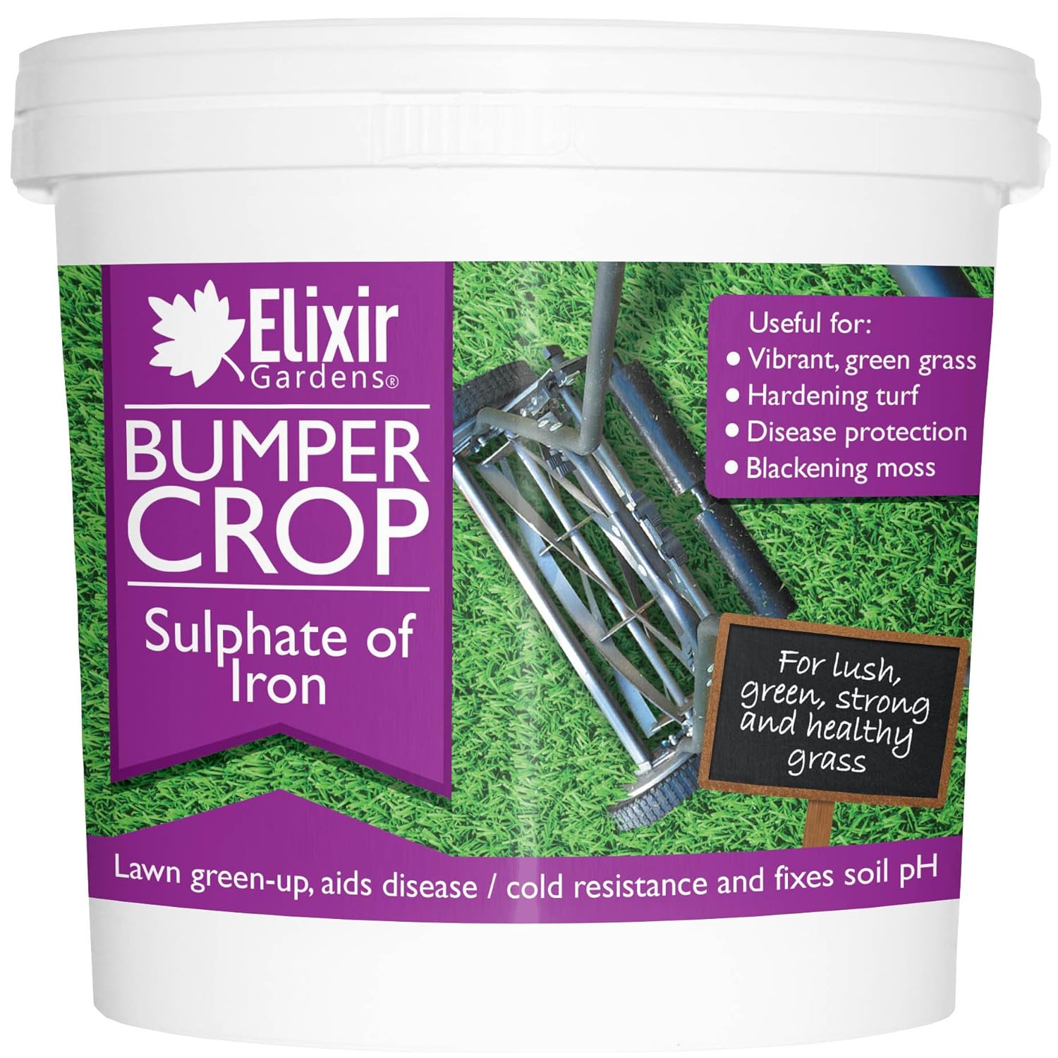 Moss Killer Iron Sulphate . Elixir Gardens Bumper Crop Sulphate of Iron Lawn Tonic/Moss Killer 10kg, ReSealable Tub After mixing the iron sulphate, allow it to rest for a minute before pouring the mixture from the bucket into the sprayer Were you to do a repeat application (double dose) at the turf hardening rate or just increase the concentration to 400 to 500 grams not only will it green the grass and harden the turf but you will severely blacken moss