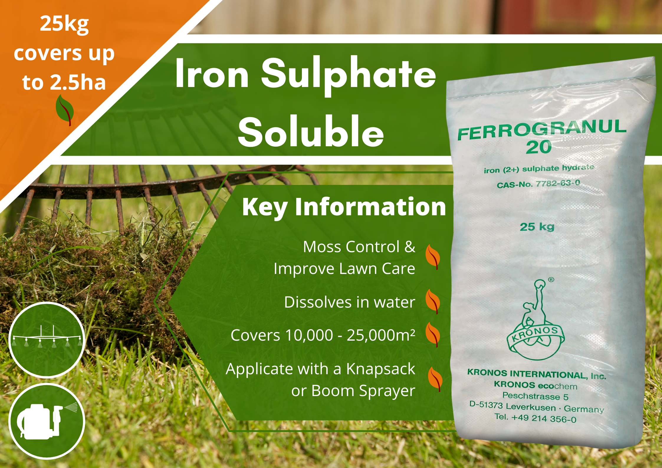 . How much iron sulphate to apply when it's been mixed with fertiliser For even distribution, use a garden sprayer to apply the diluted iron sulphate moss killer to your lawn